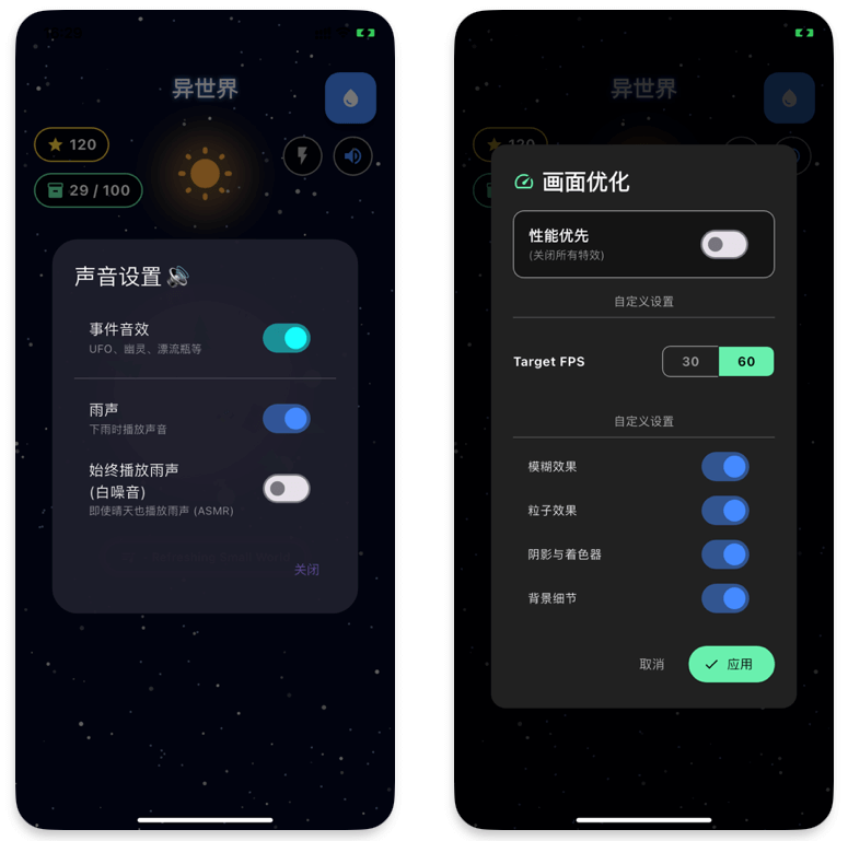 🎼 它是随身携带的 ASMR 播放器 对于 Premium 用户来说,这不仅是一个游戏,更是一个高品质的音景 App。