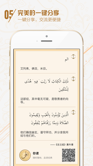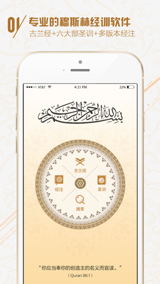 作为国内第一款集合古兰、经注和六大部圣训的综合性经训软件,我们在给用户免费提供完整权威数据内容的同时,支持经文搜索、复制、书签、笔记、分享等功能,尽我们所能地为用户了解、学习经训提供便利。