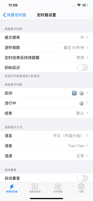 1Timer可以提供会用语音播报剩余时间的定时器。语音提示的内容和时机等均可以自定义。