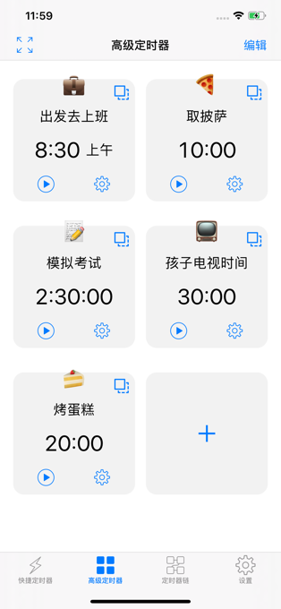 • 您可以设置高级计时器,每个计时器具有不同的配置。