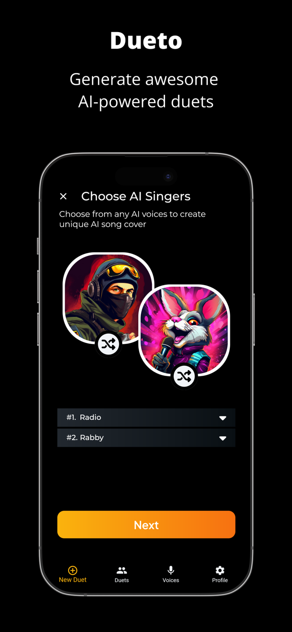 Dueto AI - create unique AI duet with AI voices and transform your favourite songs into Duets.