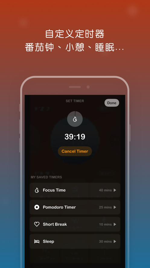 - Custom Timer: Pomodoro Timer, Nap, Sleep...