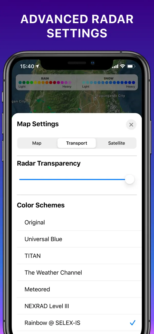 使用Rain Radar快速查看动画雷达图像和当前状况。