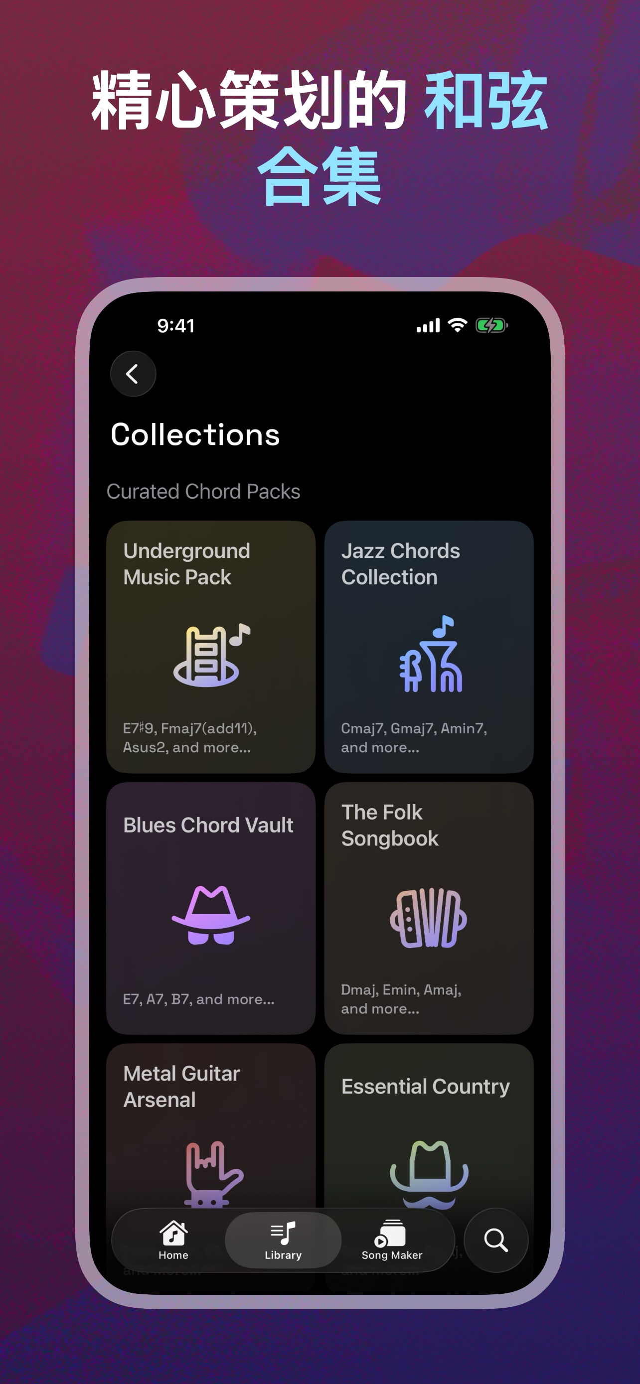 每个和弦都能开启更多可能。即时发现相关和弦和常见和弦走向,理解和弦在真实音乐中的搭配与流动。