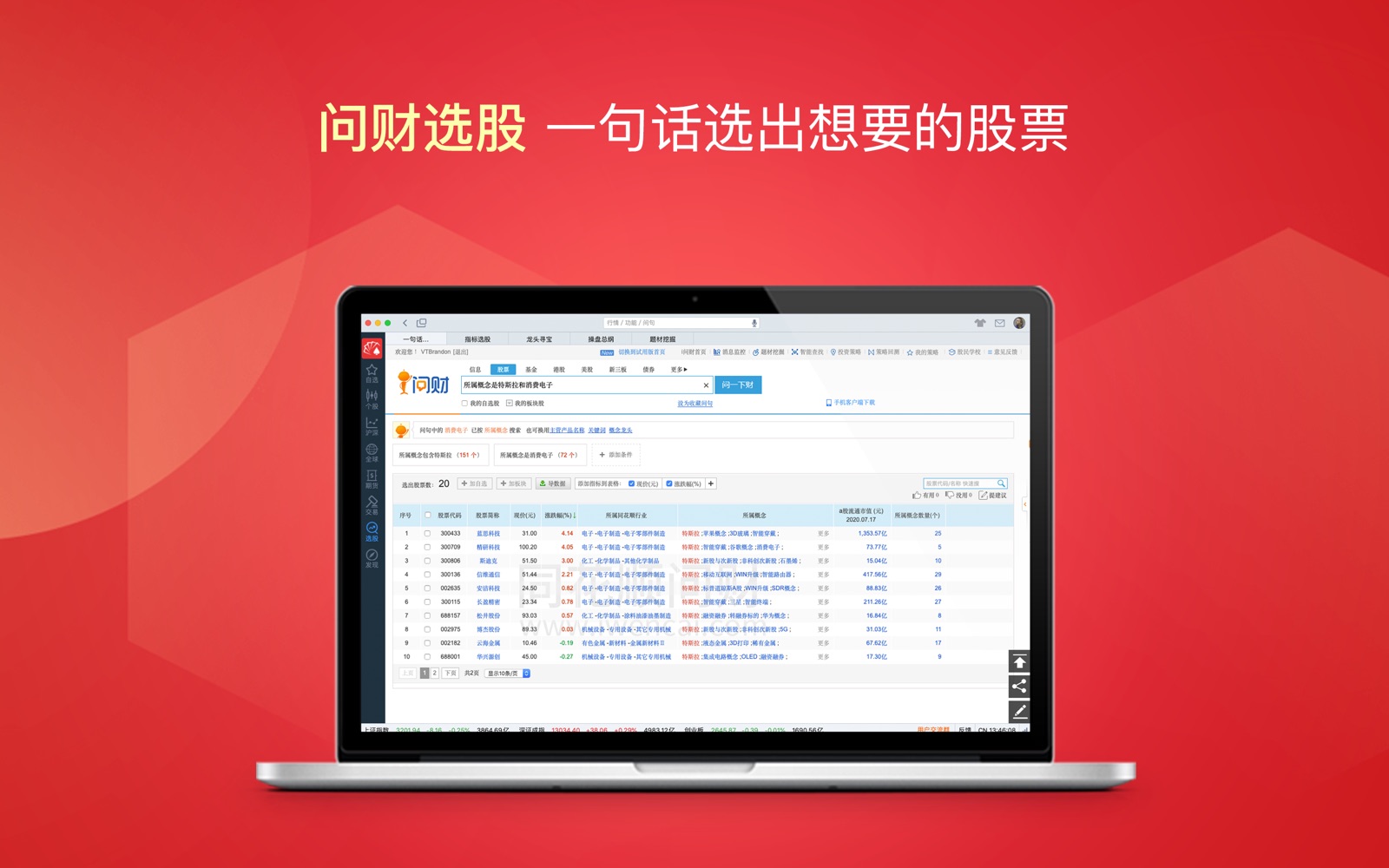 2、问财选股:基于人工智能技术,一句话选出自己想要的股票;