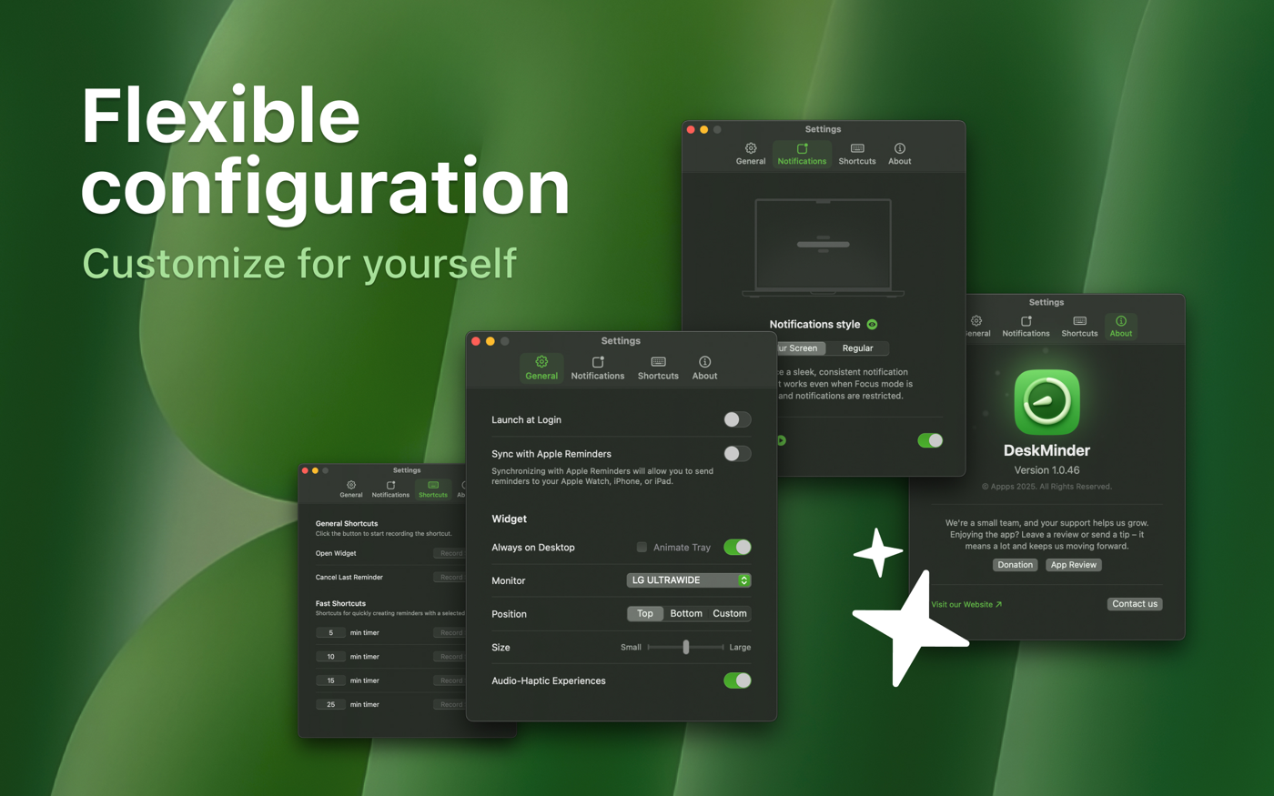 • Flexible Widget Placement: Position the reminder widget anywhere on your screen or hide it completely.