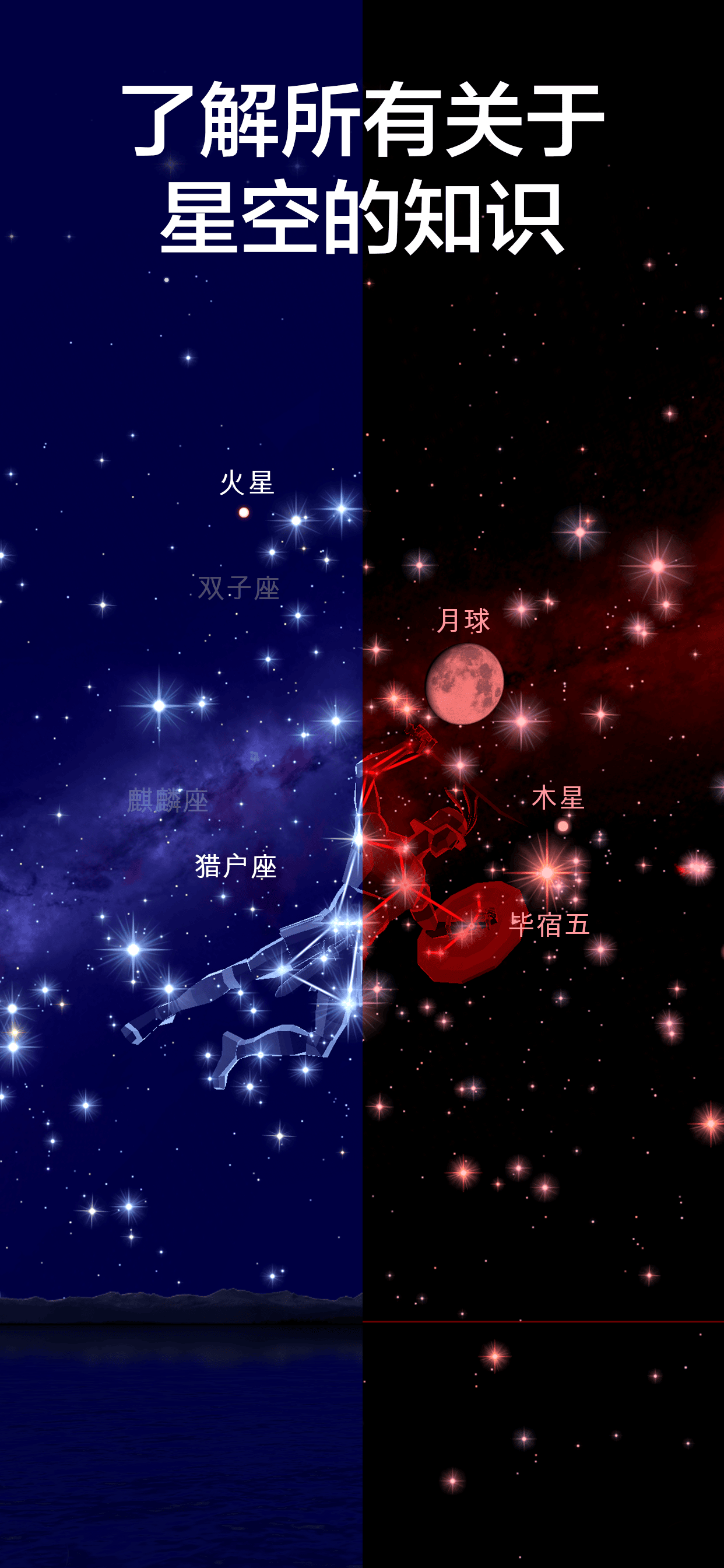 该应用程序通过使用您设备内的传感器与全球定位系统来确定夜空中恒星、行星、星座、彗星、国际空间站、卫星、星团、星云以及流星雨的准确位置。