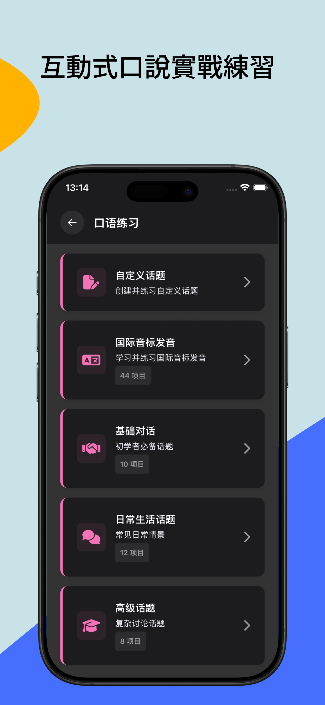 • 個人化詞彙列表:建立您自己的詞彙集,進行專注練習。