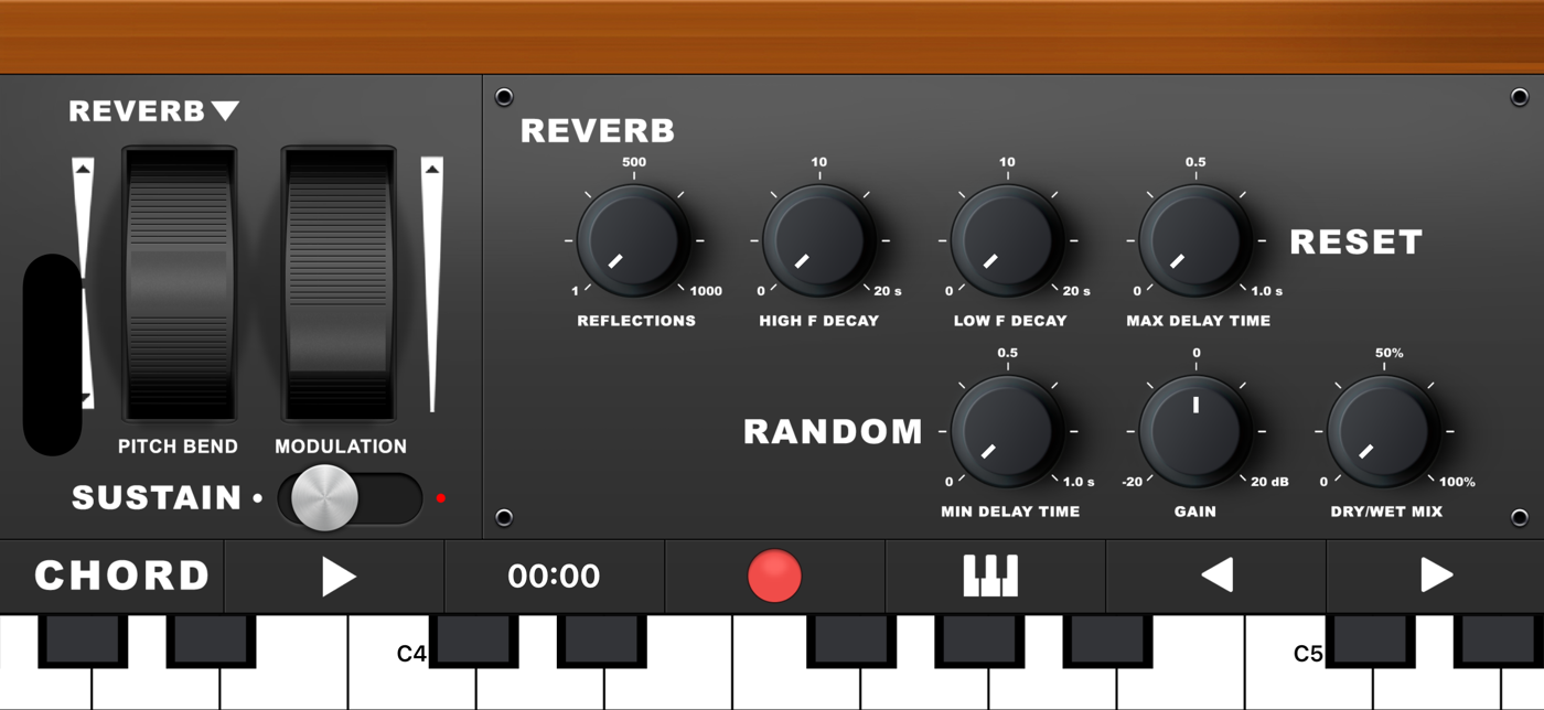 • 专业效果链:使用混响(高/低衰减、反射)、延迟(反馈、时间)、压缩器(阈值、起音)、合唱(人声、深度)、镶边(延迟、反馈)、移相器(极点、中心频率)和峰值限制器进行增强——所有效果器均可在 AUv3 模式下实现自动化。