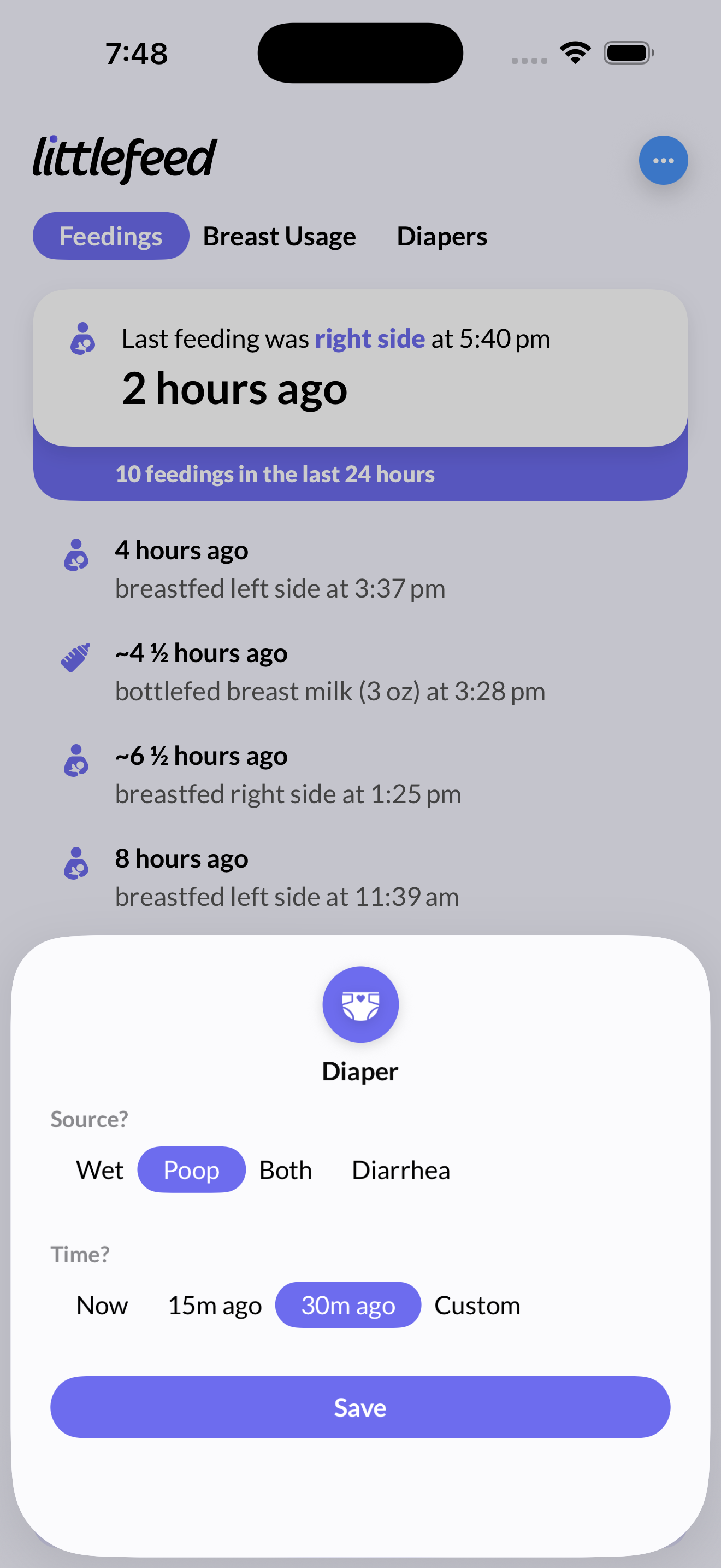 母乳最棒。我们希望能帮助您以自己喜欢的方式哺育宝宝。littlefeed 是一款专为您的宝宝设计的喂养追踪应用,由新父母为其他新父母设计。• 记录母乳喂养、瓶喂或吸奶时间,包括您使用的侧翼以及喂食或吸奶的量。• 直观设计,适合单手使用。• 可在 iPhone 或 Apple Watch 上追踪记录——littlefeed 会自动在两者之间传输事件。• Apple Watch 用户:无需打开应用界面,即可直接在手表屏幕上查看最后一次喂食情况。• 使用 Siri 进行免提操作:设置类似“嘿 Siri,“母乳喂养剩余量”后,Siri 便会自动记录这一事件。“littlefeed”是一款倾注了爱心的作品。我的妻子和我在孩子们还是婴儿时每天都会使用它。我们为这款应用进行了长达一年的实战测试。我们希望它能像对我们一样,对其他父母也起到同样有益的作用。