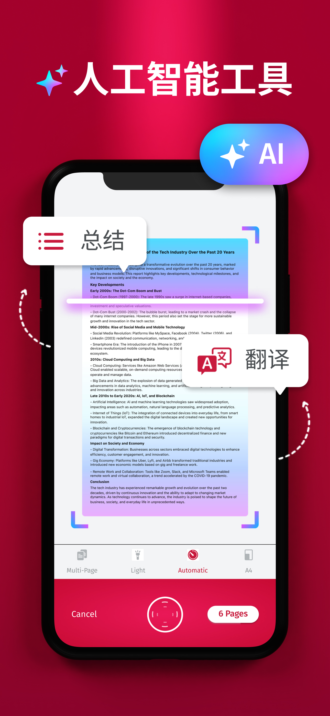 SwiftScan AI 功能 – 扫描、签名、编辑、保存和发送、总结、翻译、传真等等!