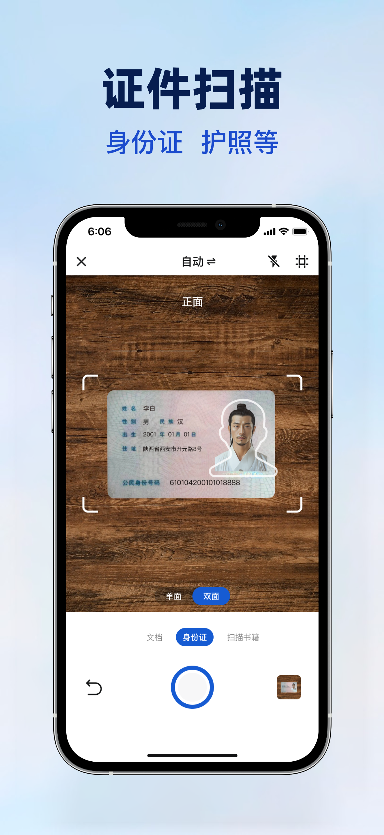 3. 证件扫描与处理: