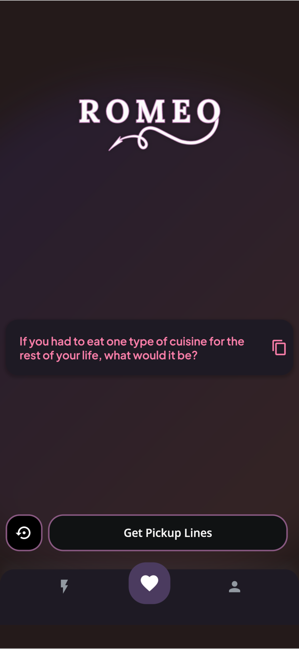 From generating unique pickup lines that make a statement to guiding you through conversations with confidence, Romeo is like the older brother you always wanted.