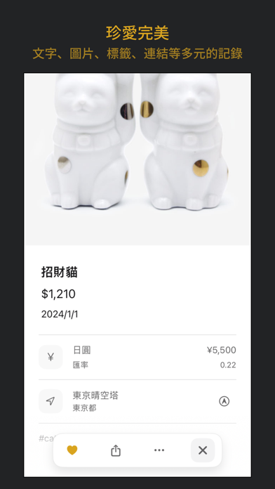 - 珍爱无限:遨游全世界追寻您所珍爱的事物。oThings 让您不受限地记录不同货币单位和汇率的金额。
