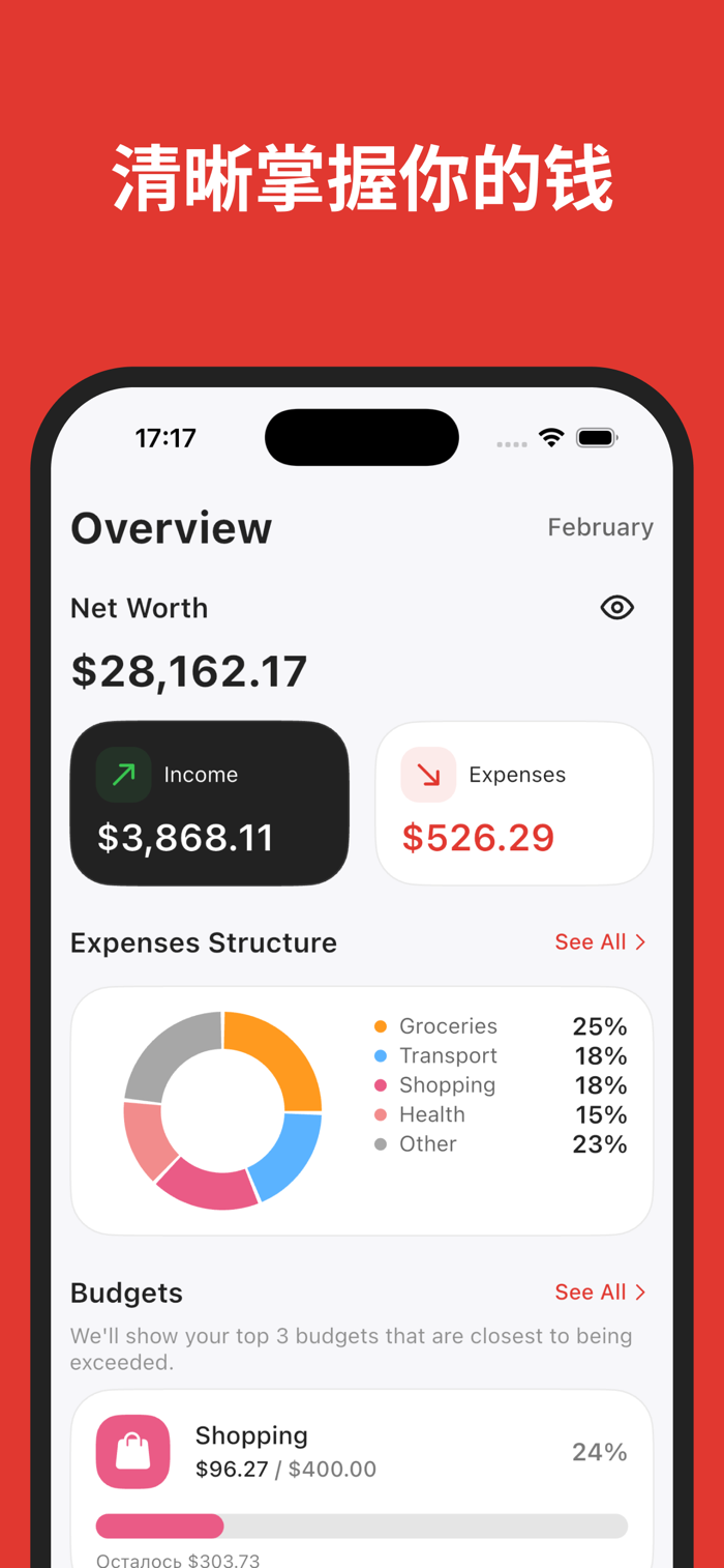 Red Money 是一款简洁高效的记账应用,帮你轻松记录每一笔开支、规划预算,用清晰的数据分析和可选的 AI 洞察,真正看懂自己的钱花在了哪里。