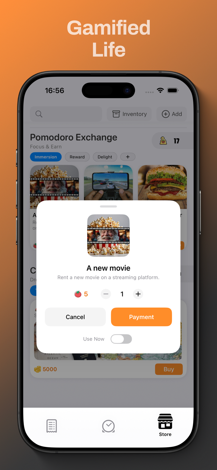 Pomodoro focus earns real Tomatoes; a custom shop turns Coins into rewards.