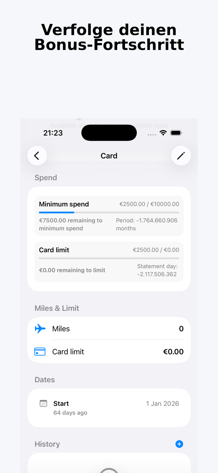 MileManager助力用户结构化管理信用卡里程积累,清晰展示欢迎奖励、消费额和期限,便于针对性规划。功能包括信用卡里程汇总、欢迎奖励与最低消费跟踪、时间窗口与期限清晰呈现、可选每日提醒、手动规划、本地数据存储及iCloud备份。适合有意识积累里程、想让信用卡使用情况清晰可查并随时掌控的用户。