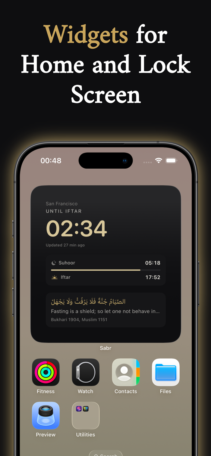 See exactly how long until Iftar or Suhoor — right on your Home Screen, Lock Screen, or inside the app. No clutter. No ads. Just what matters.