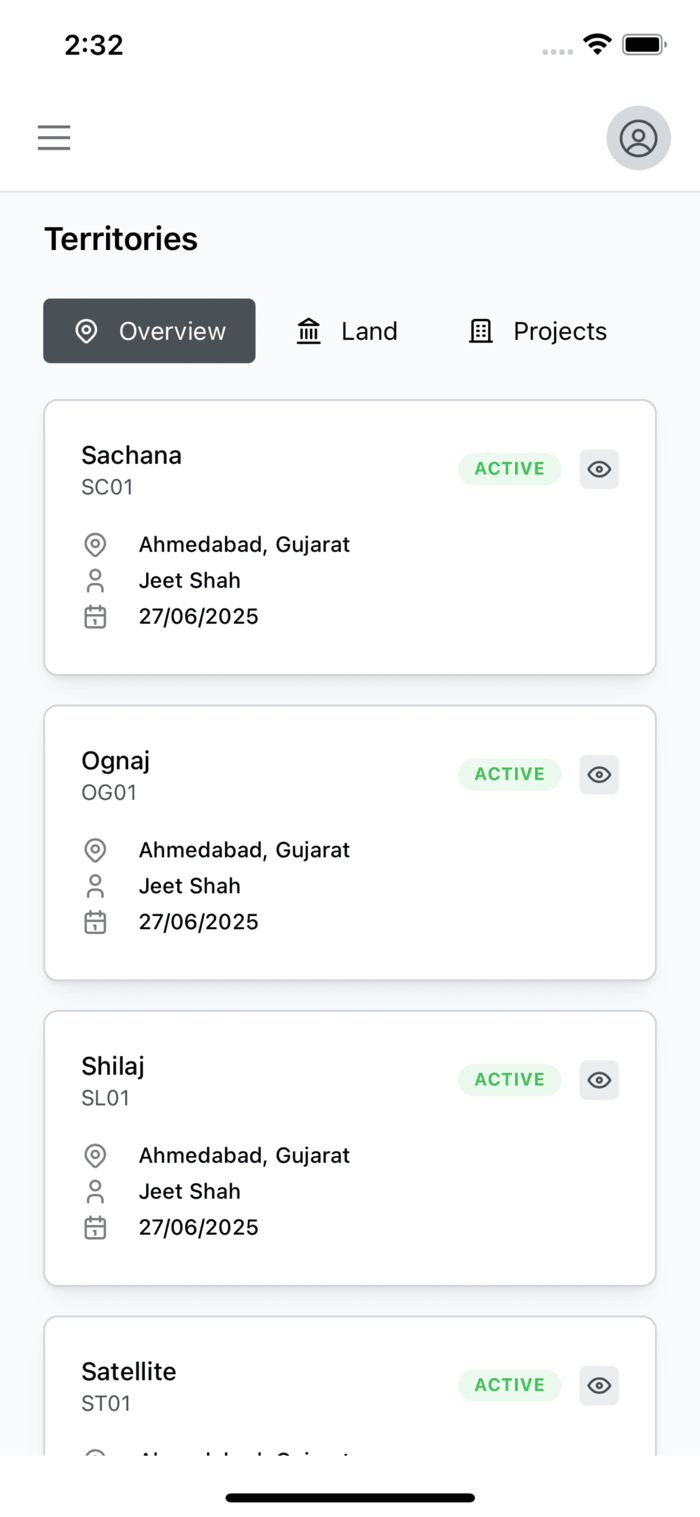 R App (Real Estate Operating System) is a structured platform designed to streamline operations for real estate professionals. The app currently includes three key modules — People, Territory, and Desk — accessible via a secure WebView. In the People module, users are organized based on assigned territories. The Territory module defines geographic areas, with each territory displaying its respective land parcels and ongoing projects. The Desk module serves as the command center, offering multiple operational tools such as CP management, project tracking, and follow-up systems — with the Land section currently active and fully functional. Users have responded positively to the platform's intuitive structure and area-wise segmentation, making R.OS a preferred solution across various roles in the real estate ecosystem.