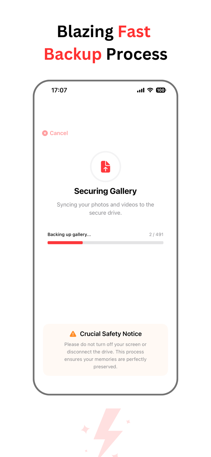 Set up automatic backups so your memories are always protected when you connect your flash drive—ideal for everyday use or phone upgrades with a smart switch.