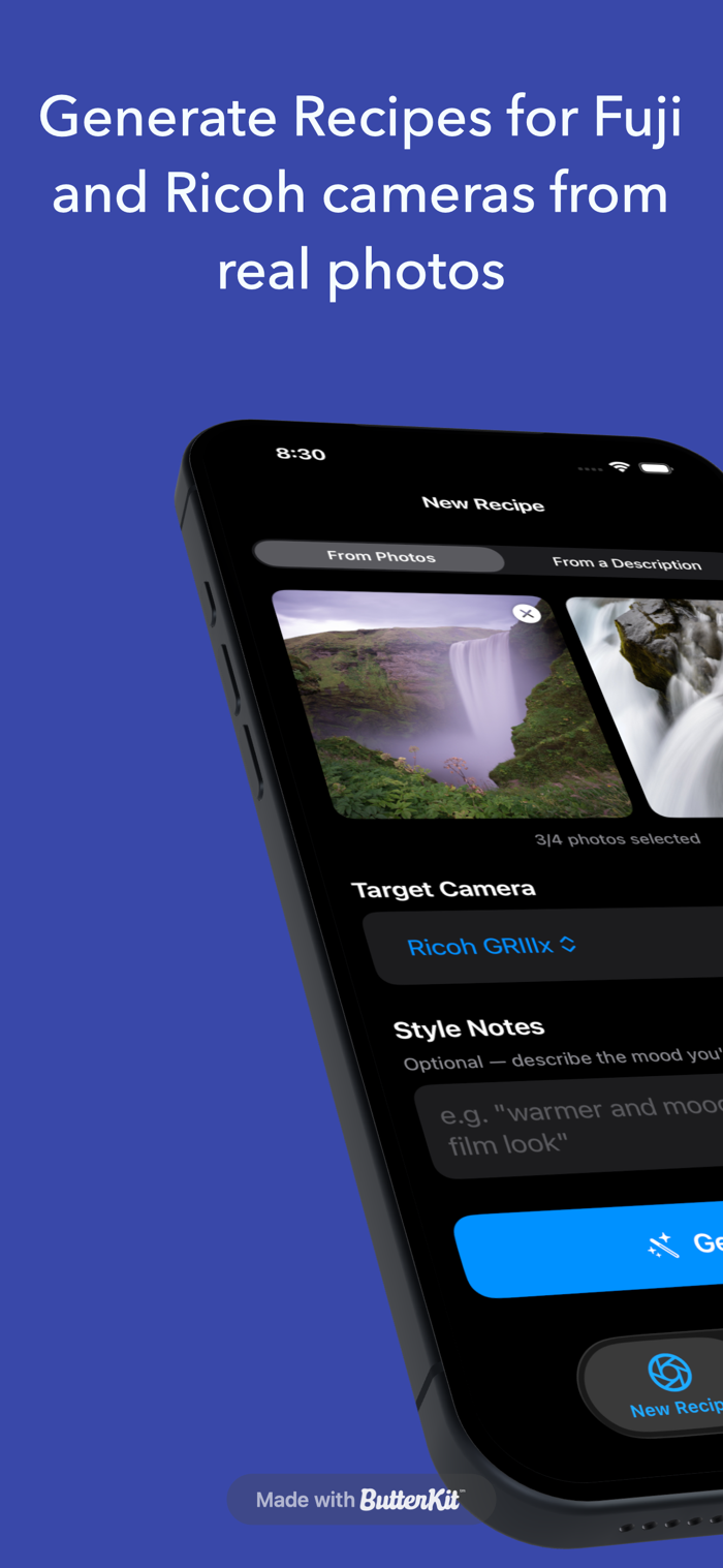ToneChef turns any reference photo into ready-to-dial-in camera settings — powered by AI that actually understands your camera.
