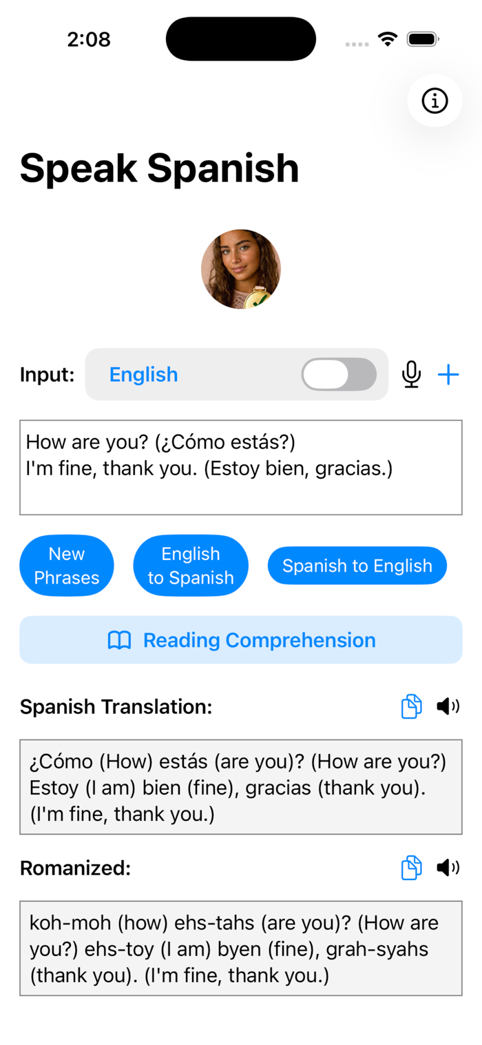 Disclaimer: Learning to speak Spanish with ai can not guarantee 100 percent accuracy or that phrases will always be contextually accurate.