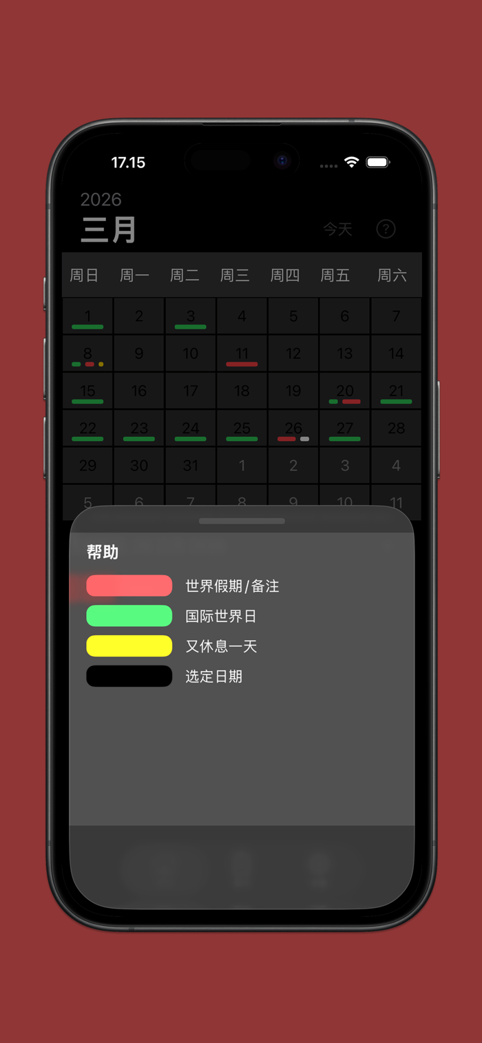 这款应用程序让了解世界重要日子更便捷。它包含国际上庆祝的众多重要日子,大多来自联合国官方日历年度活动,还有备注、日期颜色等实用功能,界面精美。能帮用户轻松知晓世界各地大日子及重要世界日,立即下载即可体验。购买确认后将从 Apple ID 账户扣费,提供隐私政策及使用条款链接,如需支持可联系 admin@ambodalleapp.com 。