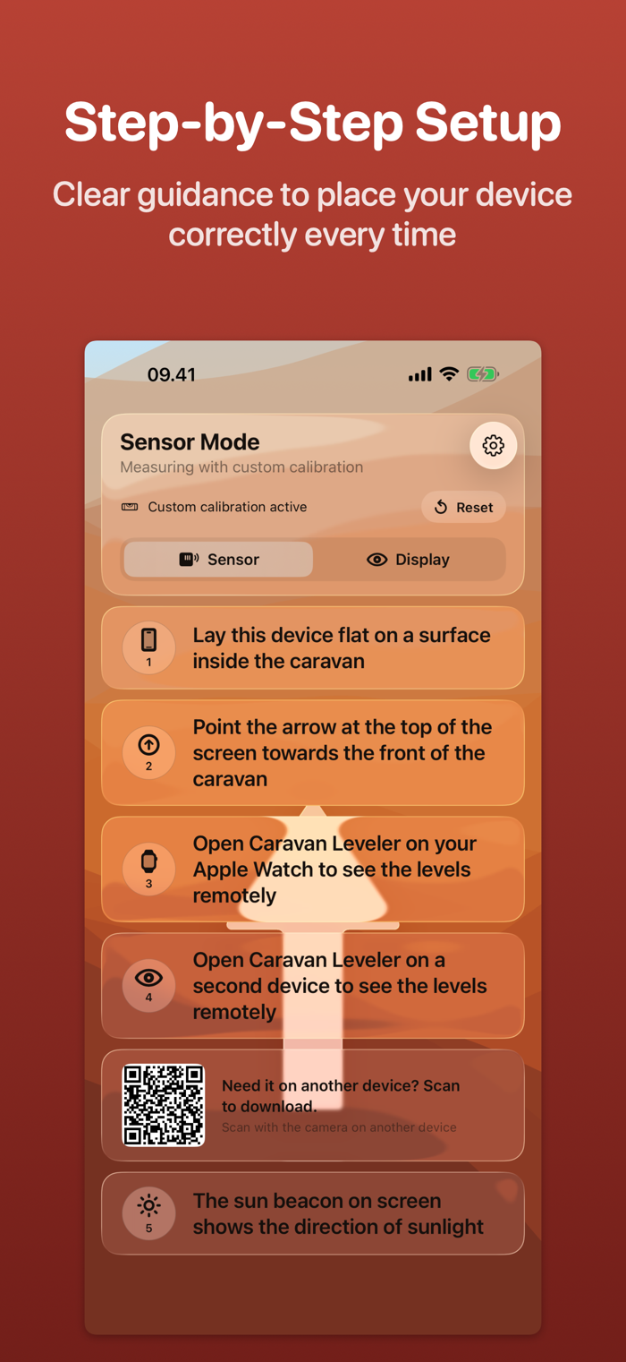 Caravan Leveler turns your iPhone into a precision leveling sensor for your caravan, motorhome, or camper. Place your phone on a flat surface inside, then monitor the live level remotely — from your Apple Watch, a second iPhone, or an iPad — using peer-to-peer connectivity. No Wi-Fi or internet required.