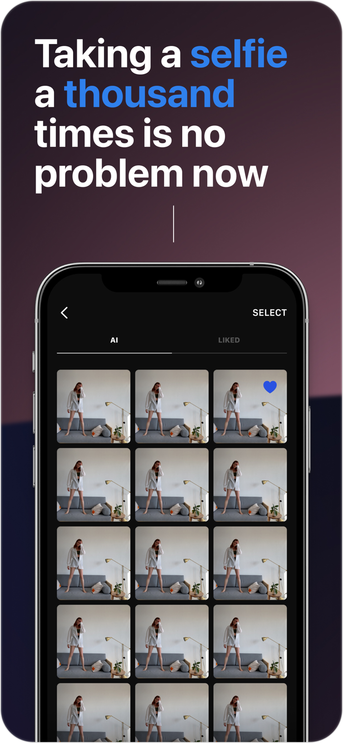 Once your photo session is over, mark the photos you like in the gallery and our AI will adjust its logic to better reflect your preferences. As soon as our camera has enough data, a new personalized mode will be available in the settings bar.