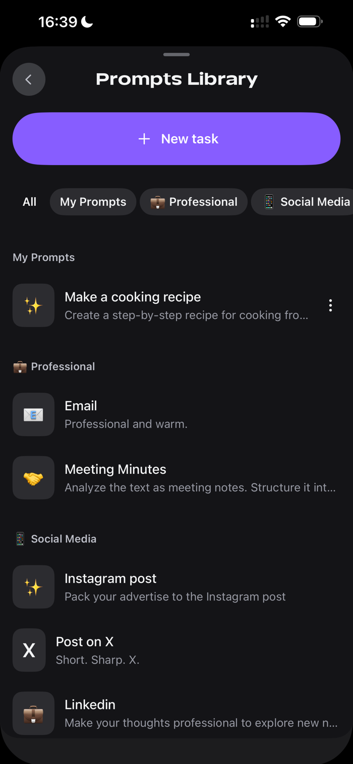 Zephyr—Voice Notes是一款语音优先的笔记应用程序,需订阅高级版使用。订阅后,它能帮你处理各种场景,如随时头脑风暴、听写邮件或总结会议。其高级AI功能包括即时转录,将语音记录快速转为准确文本;AI转换,可把意识流转化为列表、专业邮件或简洁总结;还能创建自定义提示匹配个人工作流程。使用条款和隐私政策:https://zephyrapp.net/terms 、https://zephyrapp.net/privacy 。