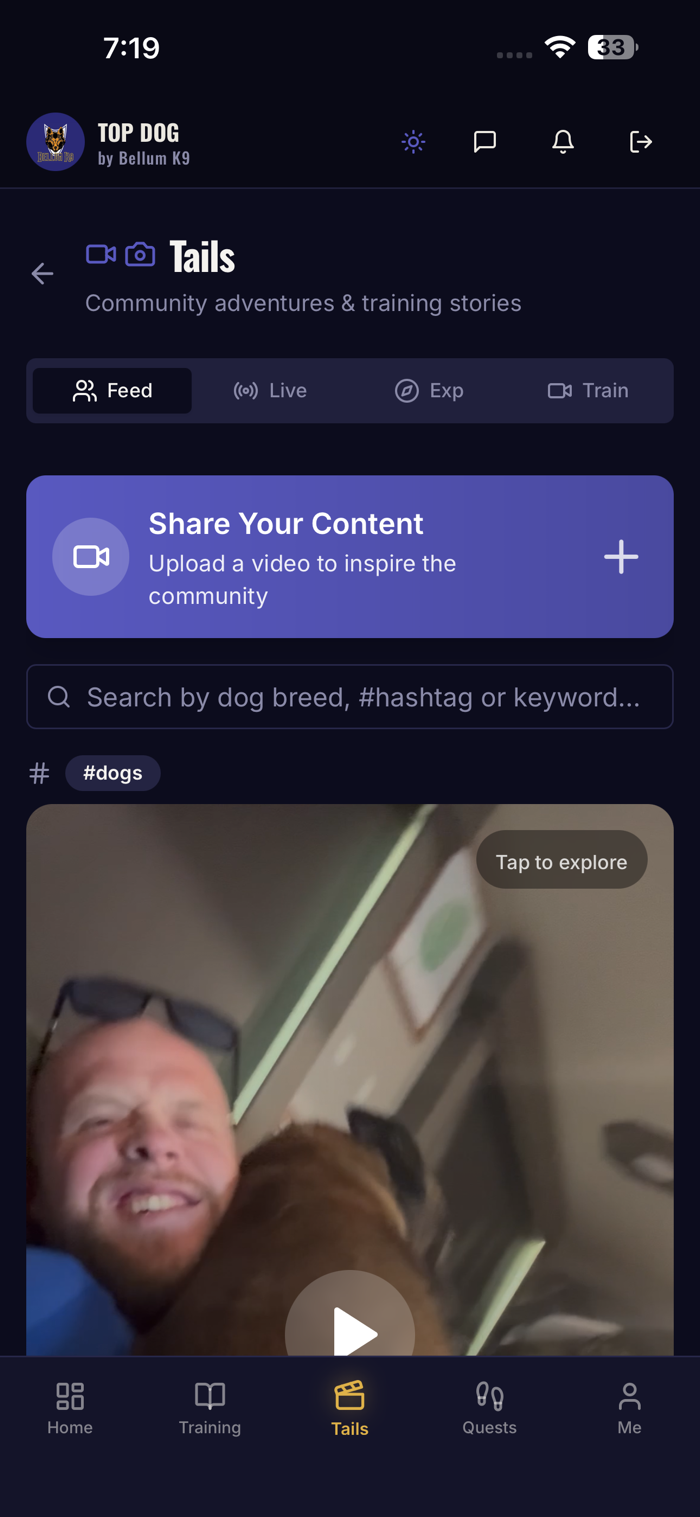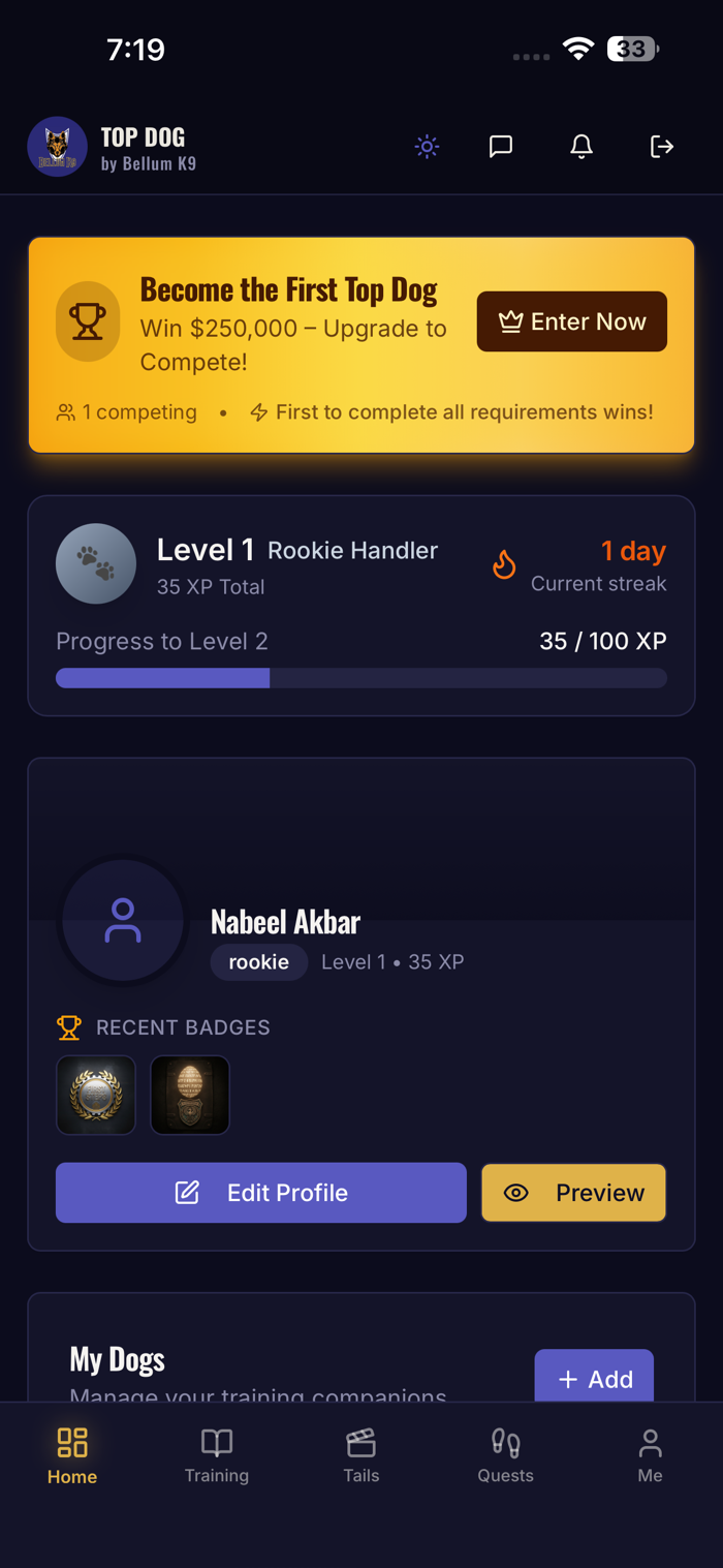 Top Dog by Bellum K9 helps build a real bond between you and your dog through training and adventure. It combines guided training, exploration, and community to turn everyday dog ownership into a real world adventure, making walks missions, training teamwork, and progress memories. Built by those who understand the true dog handler bond, it helps you communicate more clearly with your dog without needing a working dog or professional background, just time together and the right structure.