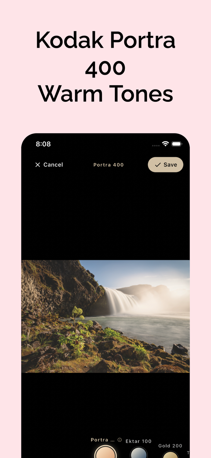 Film Camera features many meticulously crafted filters that faithfully simulate real film stocks — from the warm, creamy skin tones of Kodak Portra 400 to the cinematic tungsten hues of CineStill 800T. Every filter is tuned to reproduce the authentic color, contrast, vignette, and grain of its real-world counterpart.