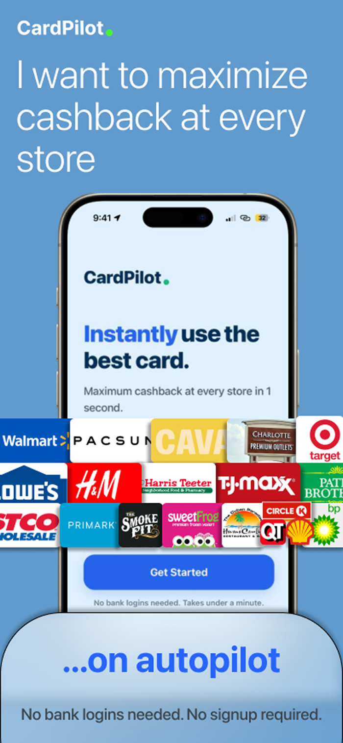 如果你曾站在自助收银台思考哪张卡能提供最佳现金返还,那么CardPilot旨在成为你每次付款时都会养成的习惯。