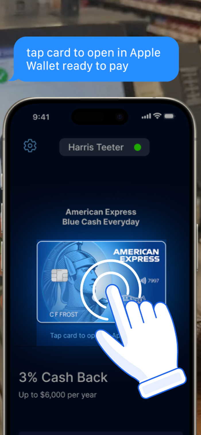 你无需告诉CardPilot“我在哈里斯·泰特超市”或“我在好市多”。该应用程序不会要求你搜索或输入商店名称。