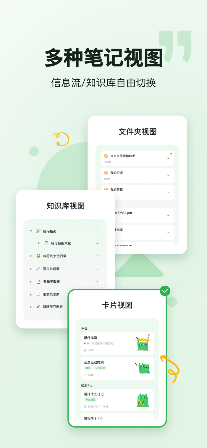 喵记多是免费AI语音笔记助手,能语音速记精准转文字,开会自动生成带思维导图的总结;可语音或图片创建待办并提醒,记录日常备忘;一键剪藏网页等提取图文存入知识库;支持多种记录方式,内容智能关联,对话式搜索;数据加密传输,多设备无缝同步。能帮你轻松搞定语音速记、会议总结、待办提醒、网页剪藏等,打造个人知识库,让学习工作生活更轻松。