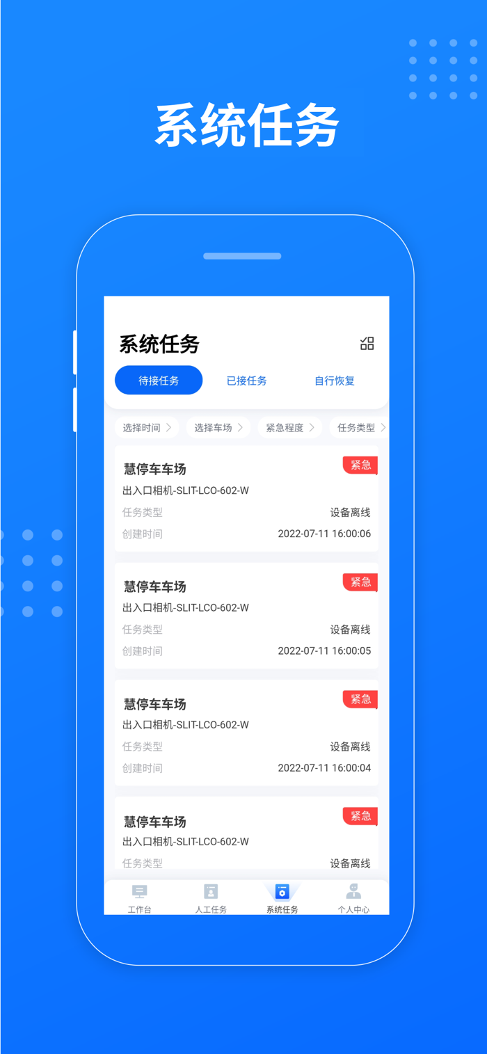 慧停车运维App专注于设备运维效率管理的解决方案,通过全面的设备运维整合服务,为您提供全方位的运维策略。通过设备监控面板,将设备与告警数据可视化展示,实时掌握设备运行情况,直观呈现车场运行的健康状态。设备告警信息实时上报,系统自动匹配到人,任务消息快速触达,以任务工单的方式流转,形成高效的工作流,量化人员的工作成果的同时,提升人员的响应速度与工作效率。