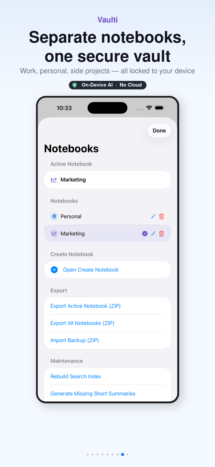 Vaulti is a private, AI-powered journal and notes app built for fast capture, deep recall, and long-term organization across iPhone and Mac.