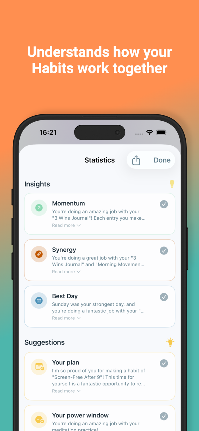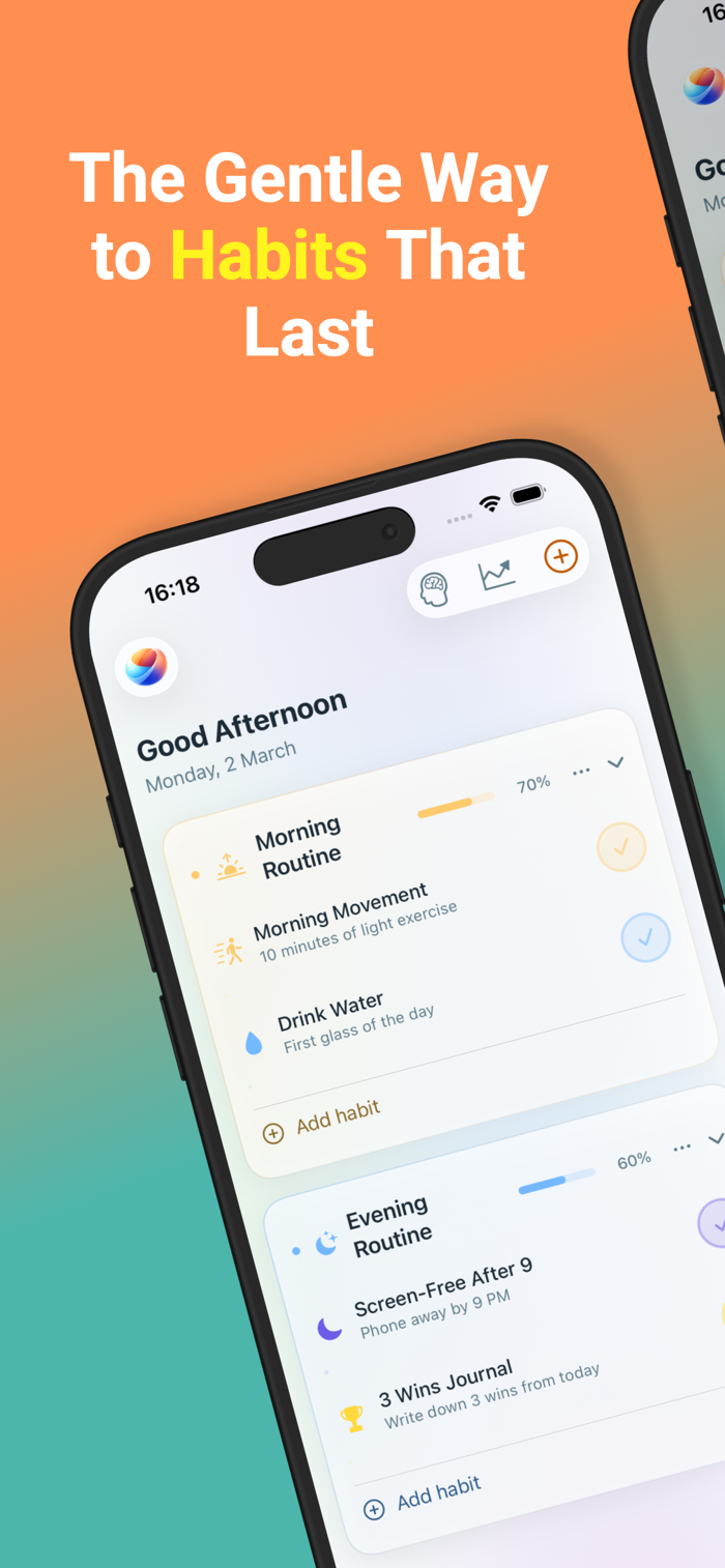 The habit tracker built for ADHD brains. Build habits gently and without pressure. Designed for people who think differently.