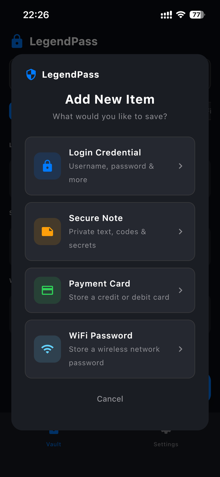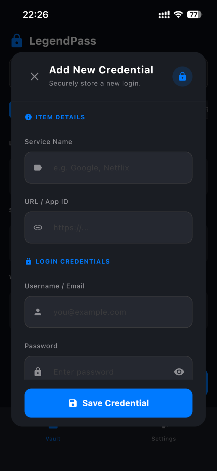 LegendPass is your personal digital fortress — a secure password manager