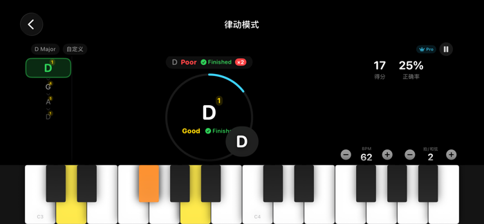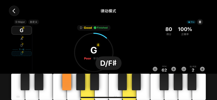 - 禅定模式:无时间压力的自由练习,特有“提前音宽限”机制,兼容音后踏板手法,专注构建肌肉记忆。