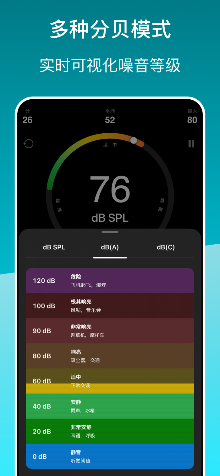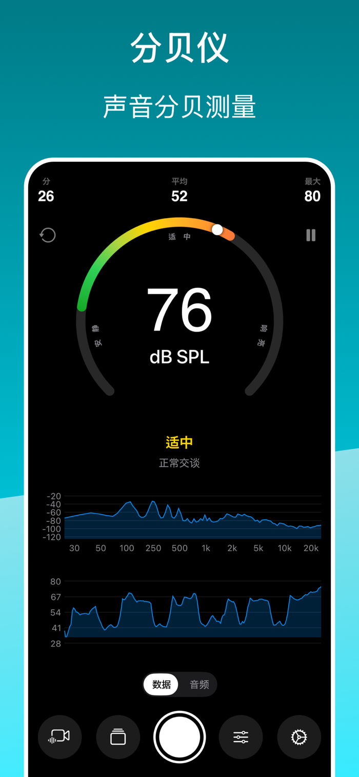 这款应用能实时精确测量声音水平,提供可靠分贝读数。采用先进音频处理技术,通过最新iOS音频架构测量模式高精度采集声级,显示界面持续更新。具备实时dB声级测量等多项功能,支持多种测量类型,可记录测量数据等,界面简洁直观,显示峰值和平均值,有快速参考声级对照表及稳定历史记录,适用于多场景及多类人群,优势明显,还提供应用内购买和自动续订订阅解锁专业功能。
