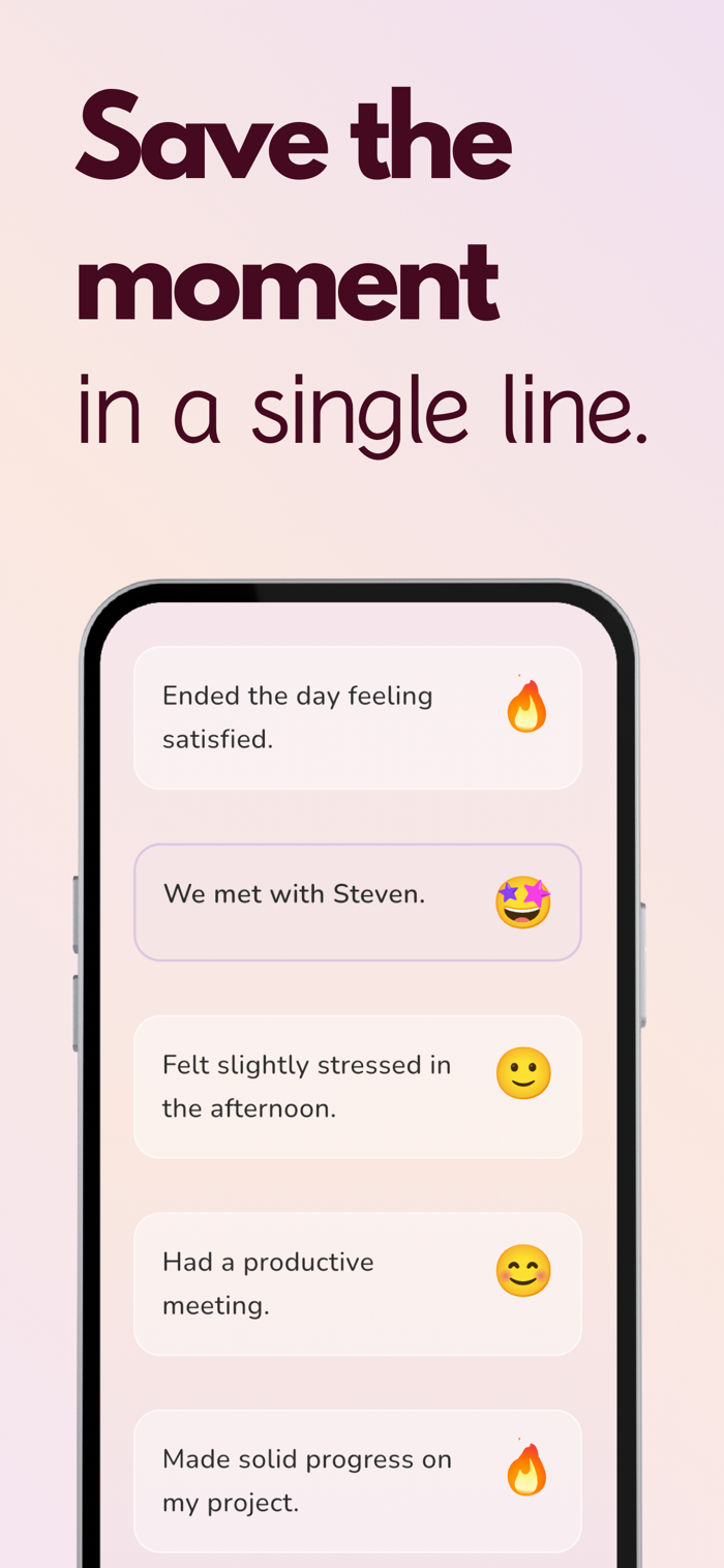 Line2Day is a private daily journal and mood tracker designed for simplicity. Write quick one-line memories throughout the day and discover your emotional patterns.