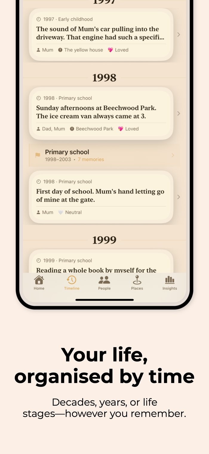 给它标注时间——如果你记得年份就写年份,要是不记得就写人生阶段。“幼儿园” 或 “第一份工作” 和 “1998年夏天” 一样管用。