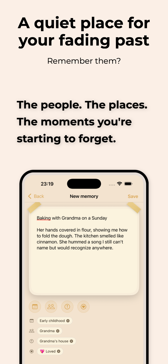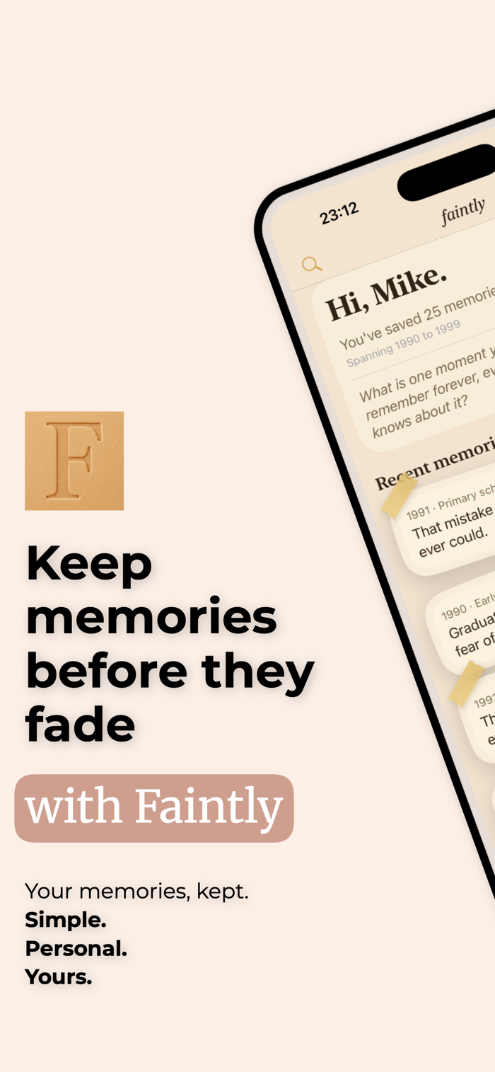 当怀旧之情涌起,打开 Faintly 把它写下来。只需寥寥数语。就足够了。