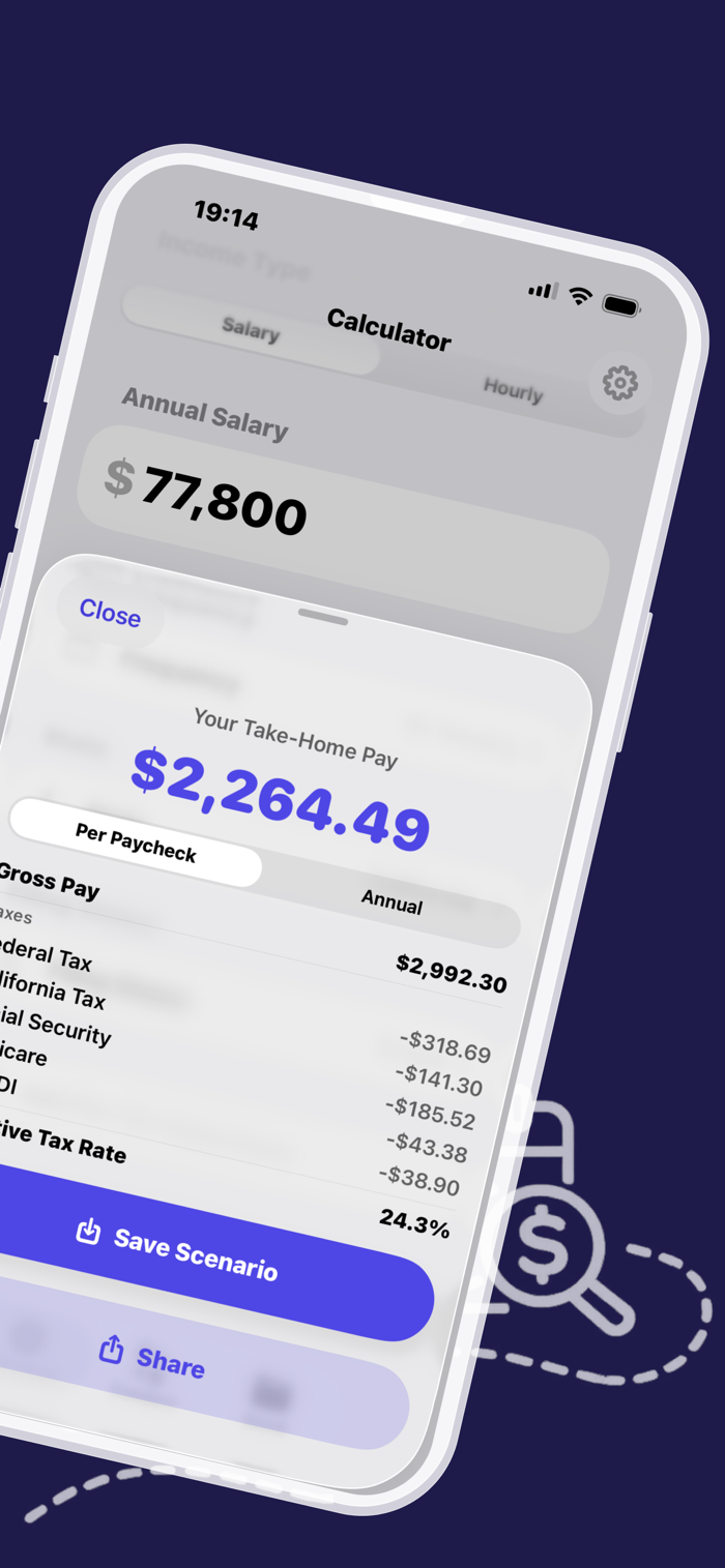 Enter your annual salary or hourly rate and NetPay breaks down your paycheck into a clear, line-by-line summary. Toggle between per-paycheck and annual views to see exactly where your money goes.