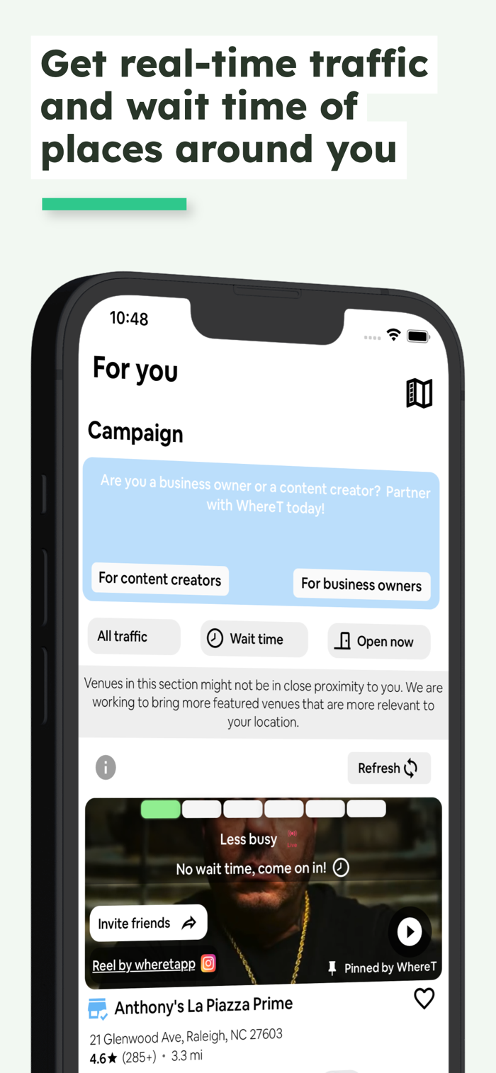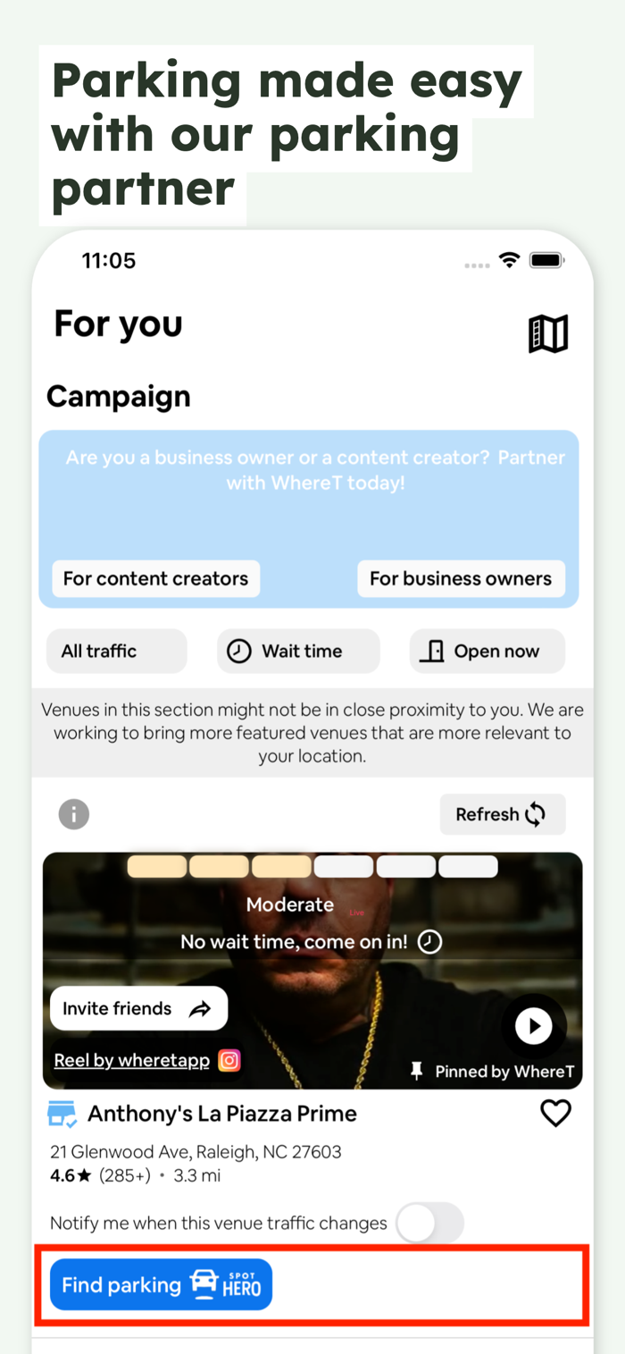 WhereT:一款能让你“出行前先知”的应用程序!获取你喜爱场所的实时及预测人群流量!WhereT能让你深入了解所在区域的餐厅、超市、商场、夜总会等等!需要乘车前往场所?直接从应用程序拨打优步(Uber)或来福车(Lyft)!停车问题?我们通过付费停车集成功能帮你解决!其他功能包括:- 通过实时街道交通地图查看你的路线有多繁忙!- 外出?在应用程序内快速向朋友发送见面邀请!下载WhereT,从此无需再疑惑!