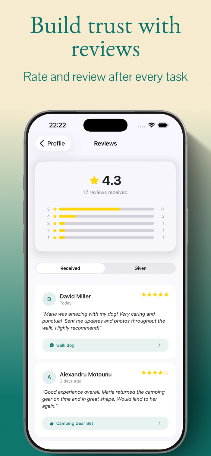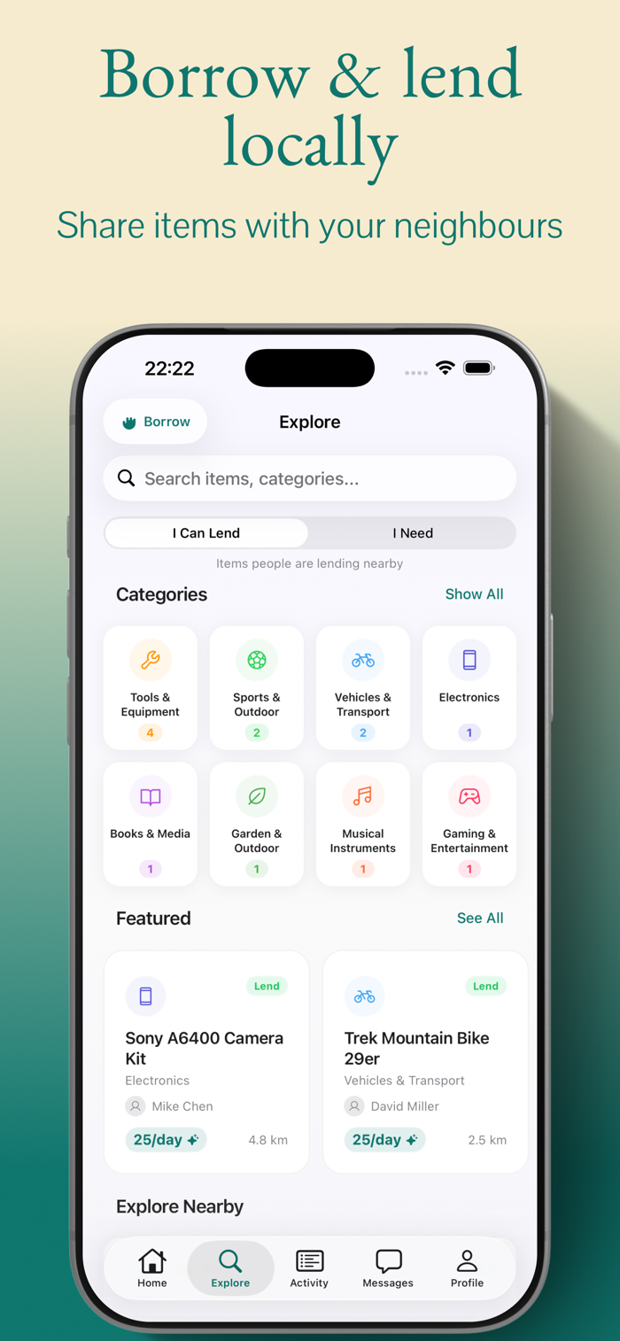 HandIt connects you with local helpers for tasks like moving, pet walking, fixing, or teaching. Post tasks with a credit reward, review applicants, pick the best, and confirm completion via QR scan. Post tasks, describe needs, set rewards, and get quick applicants. Find nearby work on the map or list, filter by category, distance, urgency, and apply. Also, borrow and lend physical items. Complete tasks to earn credits and cash out for real money.