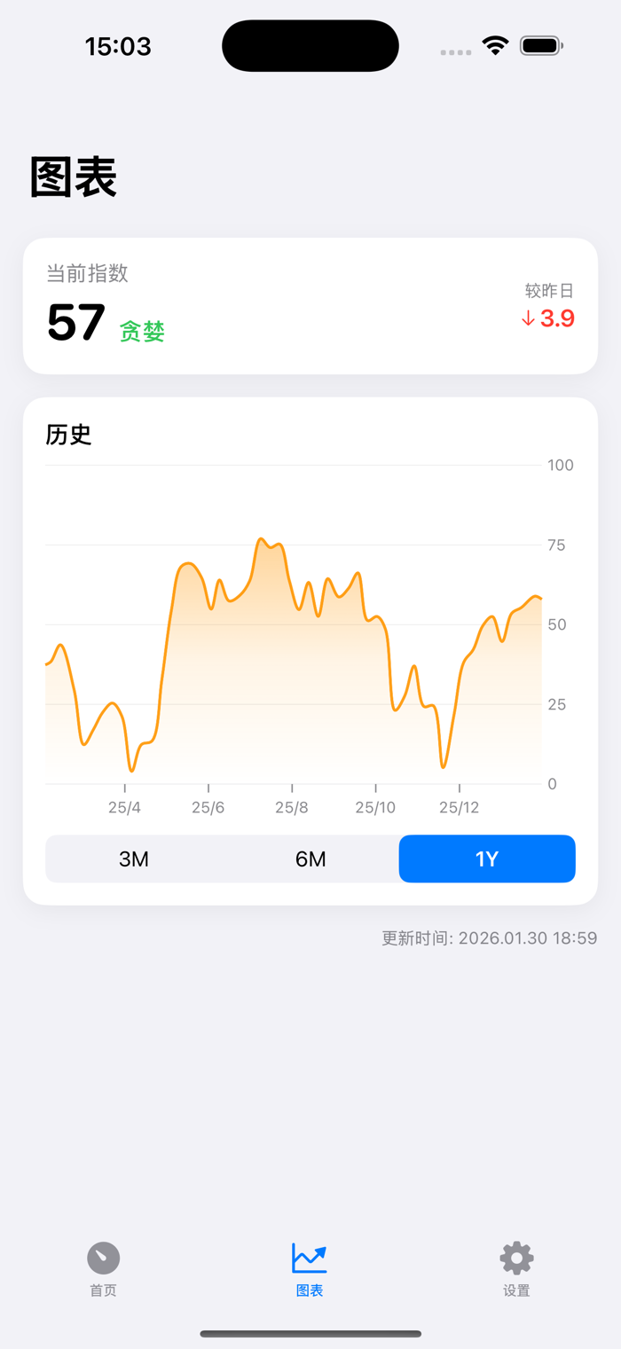市场情绪指标,以0(极度恐惧)到100(极度贪婪)的分数表示投资者的心理状态。