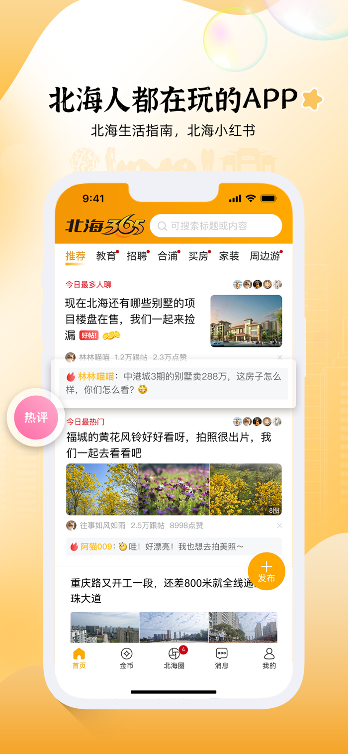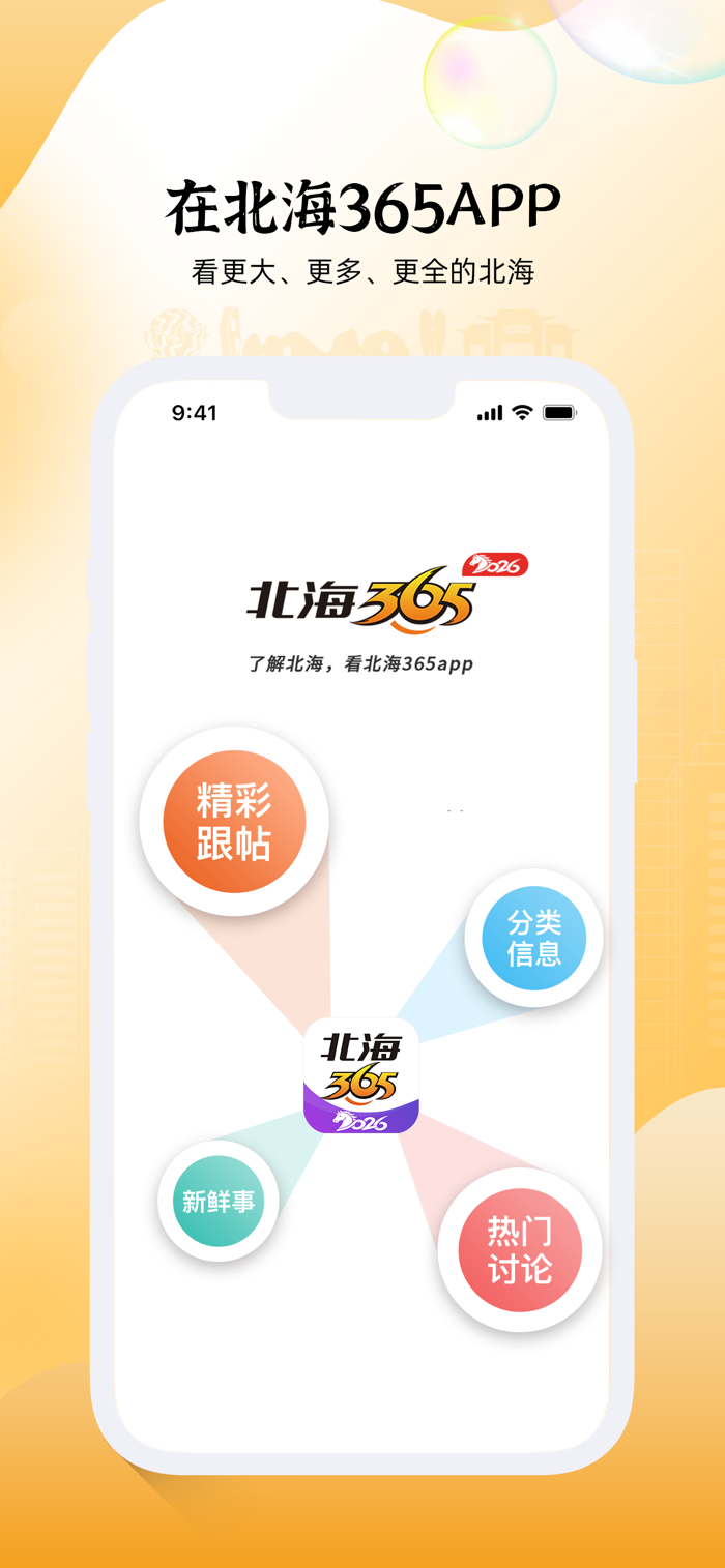 北海365网(www.beihai365.com )是北海的网络生活社区,运营超过20年,每天为180多万北海人提供本地社交、资讯、消费和生活服务。北海365APP是您和北海这个城市产生连接的窗口,我们致力将城市中的大小事呈现在您眼前,让您感受到北海这座城市日新月异的变化。