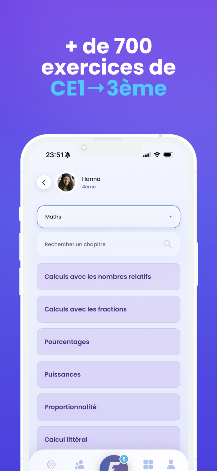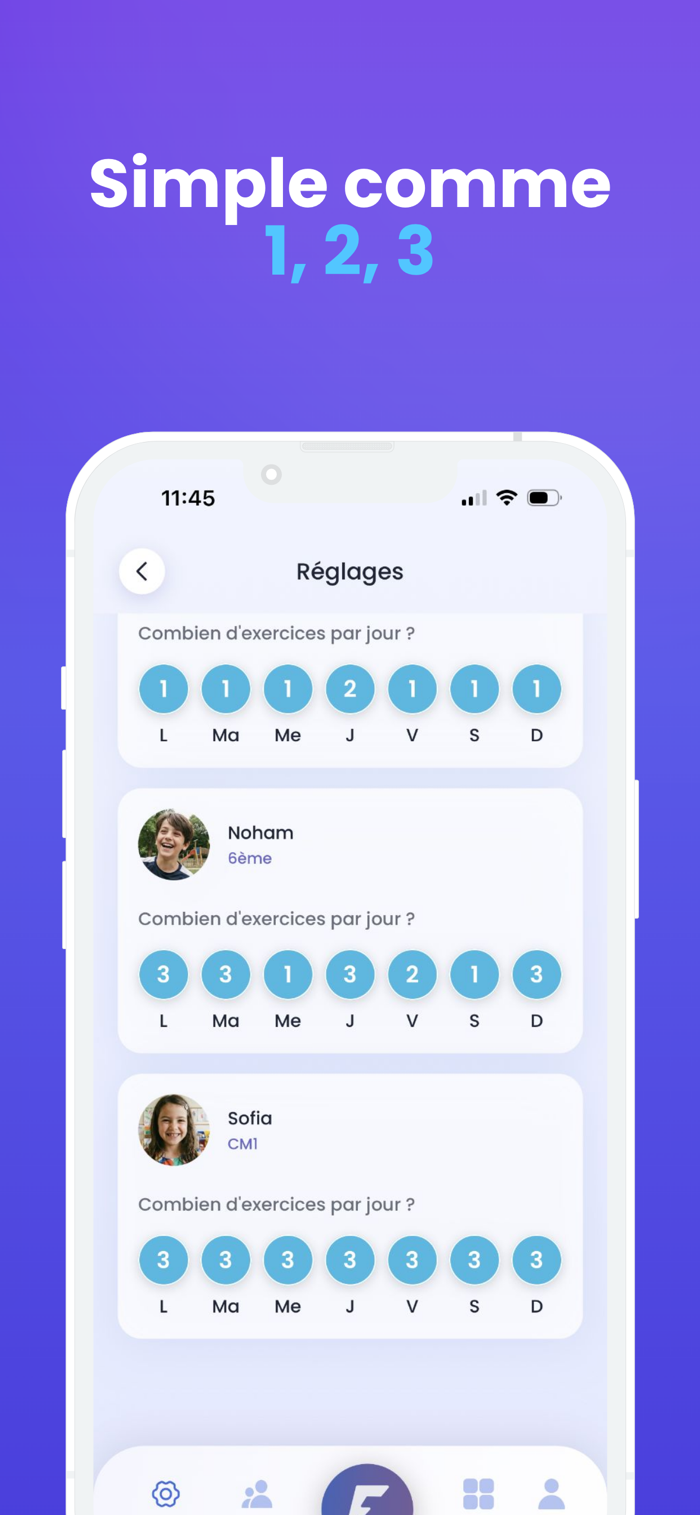 Conçue pour les familles au quotidien, l’application propose des exercices scolaires courts en mathématiques et en français, sous forme de cartes ludiques à faire défiler. Chaque session dure entre 3 et 8 minutes, ce qui permet à l’enfant de s’entraîner régulièrement sans surcharge.